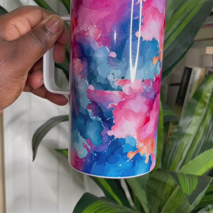 MARBLE WATERCOLOR 20 OZ Tumblers White Mugs with Handle, Stainless Steel Coffee Travel Cups with Sliding Lid